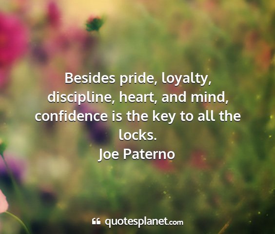 Besides pride, loyalty, discipline, heart, and mind, confidence is the key to all the locks.Joe Paterno