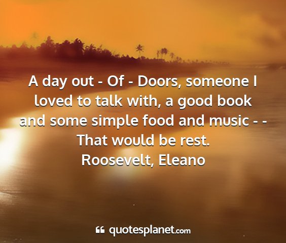 A day out - Of - Doors, someone I loved to talk with, a good book and some simple food and music - - That would be rest.Roosevelt, Eleano