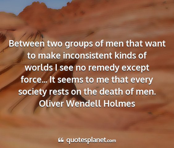 Between two groups of men that want to make inconsistent kinds of worlds I see no remedy except force... It seems to me that every society rests on the death of men.Oliver Wendell Holmes