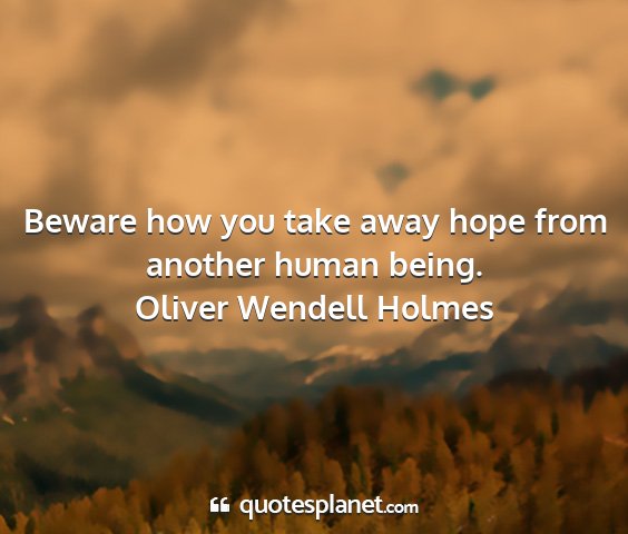 Beware how you take away hope from another human being.