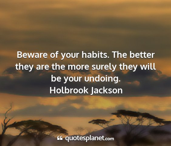 Beware of your habits. The better they are the more surely they will be your undoing.Holbrook Jackson