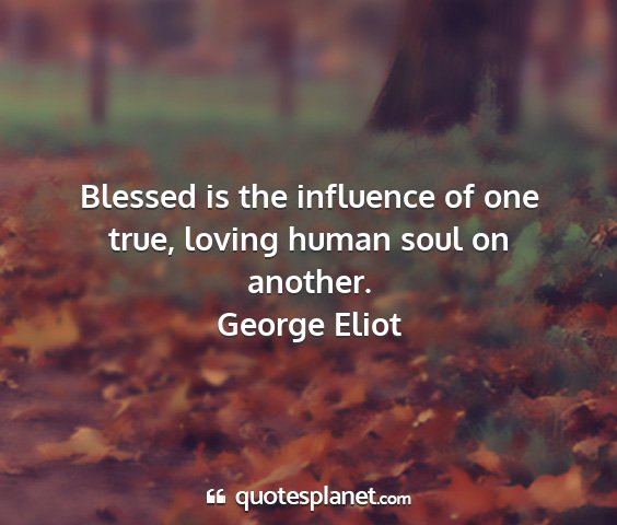 Blessed is the influence of one true, loving human soul on another.