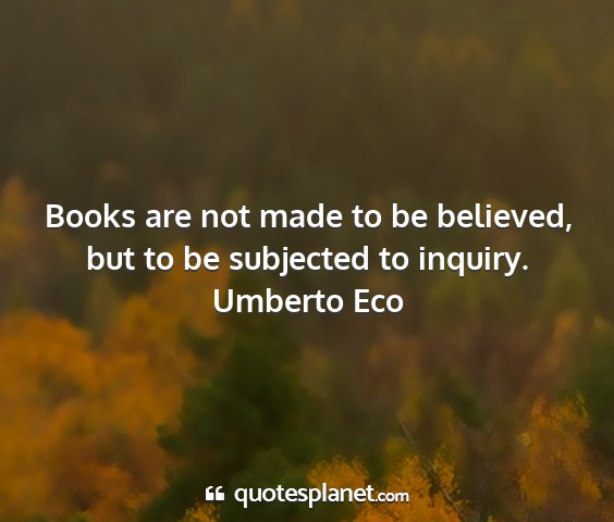 Books are not made to be believed, but to be subjected to inquiry.