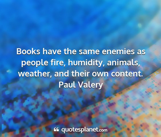 Books have the same enemies as people fire, humidity, animals, weather, and their own content.Paul Valery