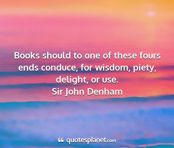 Books should to one of these fours ends conduce, for wisdom, piety, delight, or use.