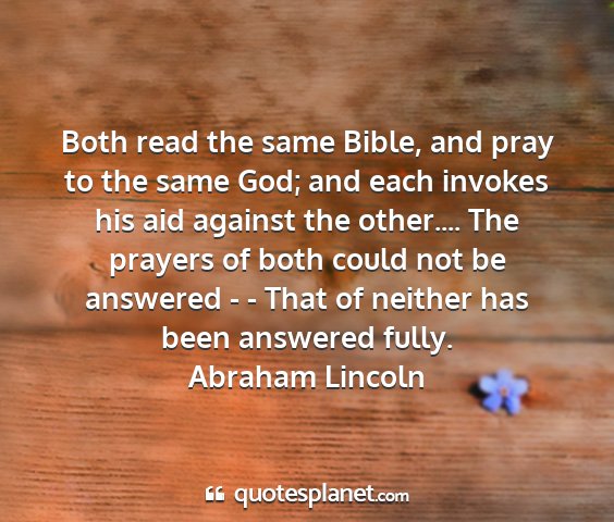 Both read the same Bible, and pray to the same God; and each invokes his aid against the other.... The prayers of both could not be answered - - That of neither has been answered fully.Abraham Lincoln