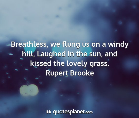 Breathless, we flung us on a windy hill, Laughed in the sun, and kissed the lovely grass.Rupert Brooke
