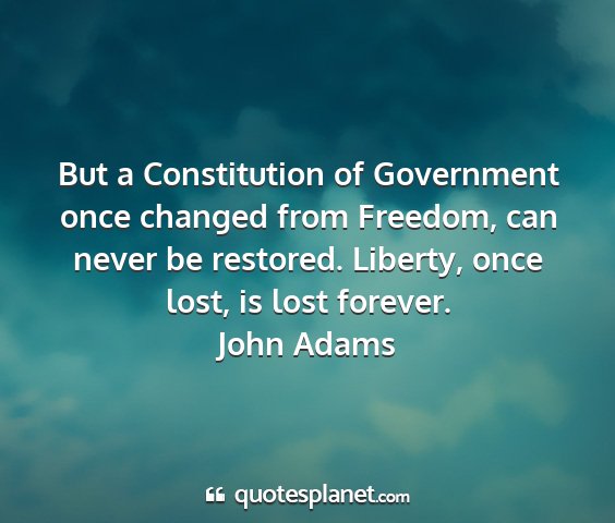 But a Constitution of Government once changed from Freedom, can never be restored. Liberty, once lost, is lost forever.John Adams