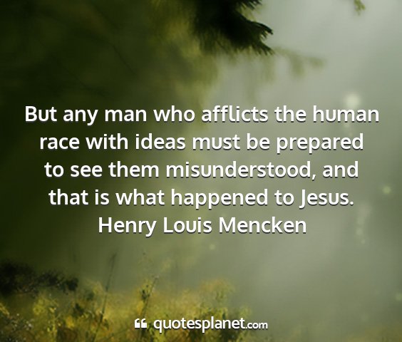 But any man who afflicts the human race with ideas must be prepared to see them misunderstood, and that is what happened to Jesus.Henry Louis Mencken