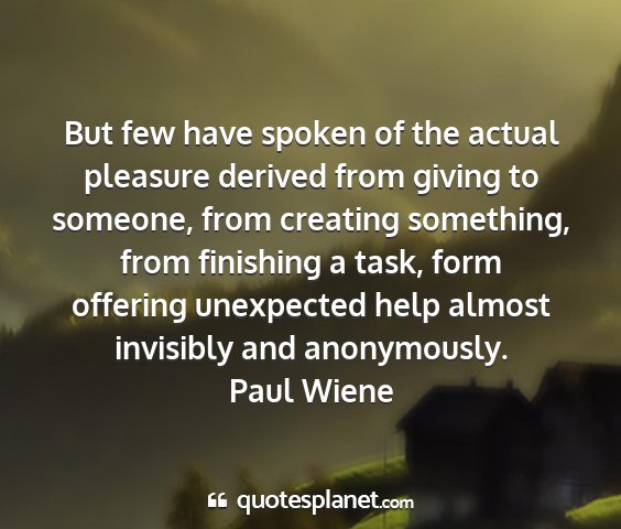But few have spoken of the actual pleasure derived from giving to someone, from creating something, from finishing a task, form offering unexpected help almost invisibly and anonymously.Paul Wiene