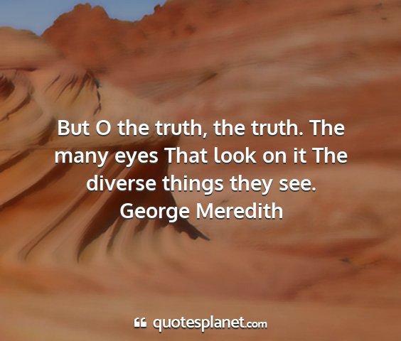 But O the truth, the truth. The many eyes That look on it The diverse things they see.George Meredith