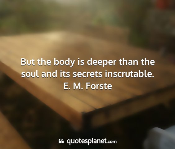 But the body is deeper than the soul and its secrets inscrutable.