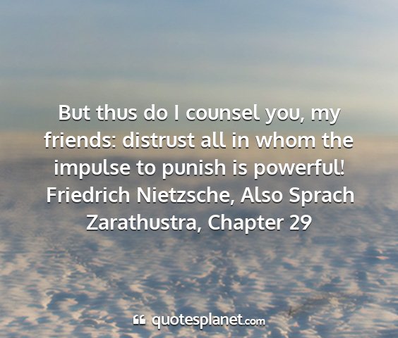But thus do I counsel you, my friends: distrust all in whom the impulse to punish is powerful!Friedrich Nietzsche, Also Sprach Zarathustra, Chapter 29