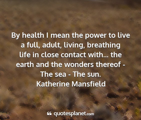 By health I mean the power to live a full, adult, living, breathing life in close contact with... the earth and the wonders thereof - The sea - The sun.Katherine Mansfield