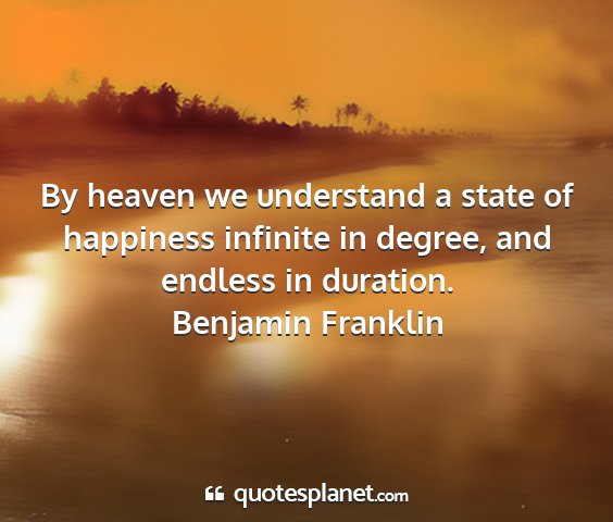 By heaven we understand a state of happiness infinite in degree, and endless in duration.Benjamin Franklin