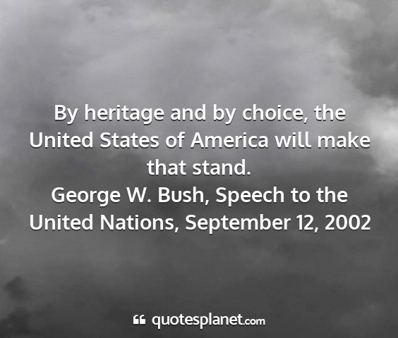 By heritage and by choice, the United States of America will make that stand.George W. Bush, Speech to the United Nations, September 12, 2002