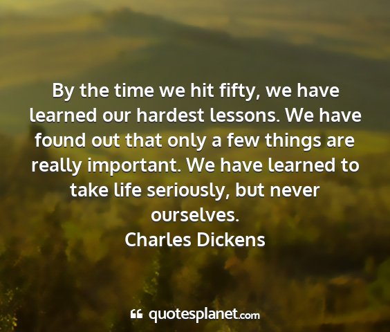 By the time we hit fifty, we have learned our hardest lessons. We have found out that only a few things are really important. We have learned to take life seriously, but never ourselves.Charles Dickens