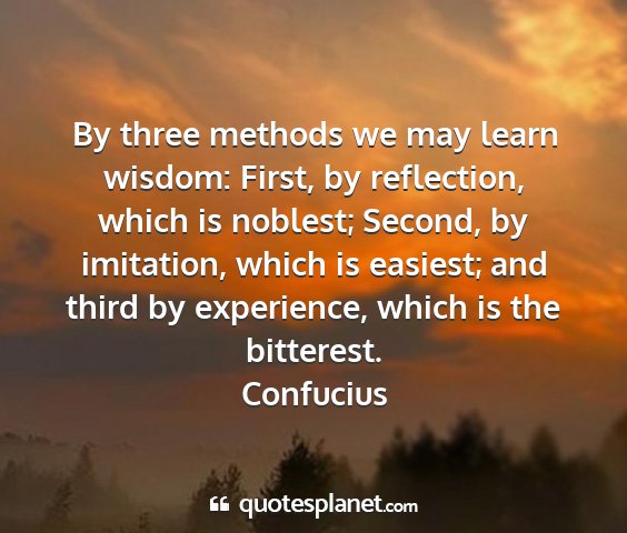 By three methods we may learn wisdom: First, by reflection, which is noblest; Second, by imitation, which is easiest; and third by experience, which is the bitterest.Confucius