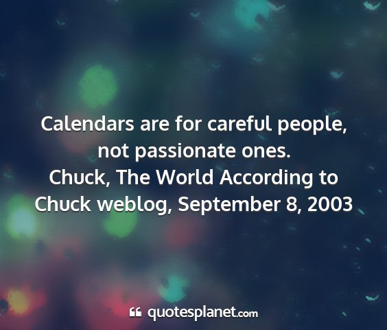 Calendars are for careful people, not passionate ones.Chuck, The World According to Chuck weblog, September 8, 2003