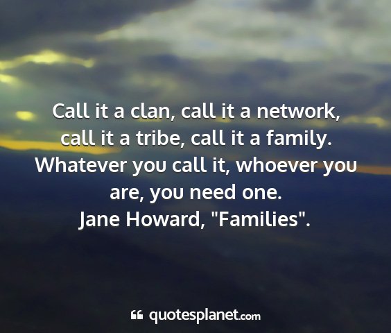 Call it a clan, call it a network, call it a tribe, call it a family. Whatever you call it, whoever you are, you need one.Jane Howard, "Families".