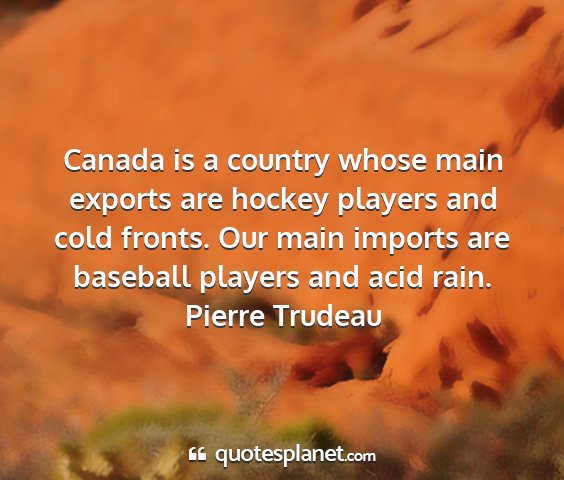 Canada is a country whose main exports are hockey players and cold fronts. Our main imports are baseball players and acid rain.Pierre Trudeau