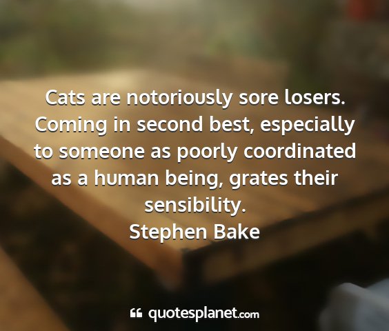 Cats are notoriously sore losers. Coming in second best, especially to someone as poorly coordinated as a human being, grates their sensibility.Stephen Bake