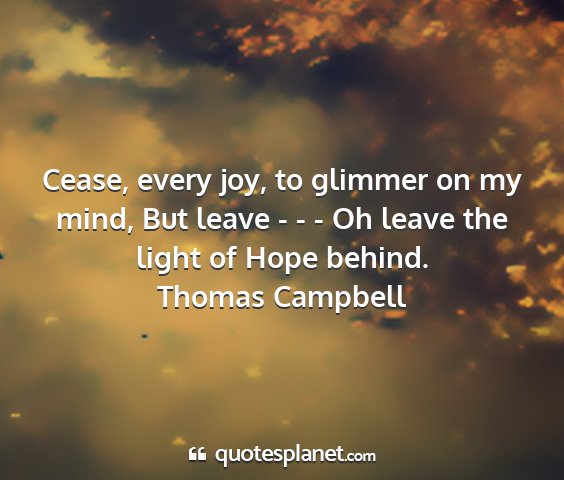 Cease, every joy, to glimmer on my mind, But leave - - - Oh leave the light of Hope behind.Thomas Campbell