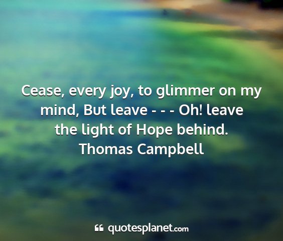 Cease, every joy, to glimmer on my mind, But leave - - - Oh! leave the light of Hope behind.Thomas Campbell