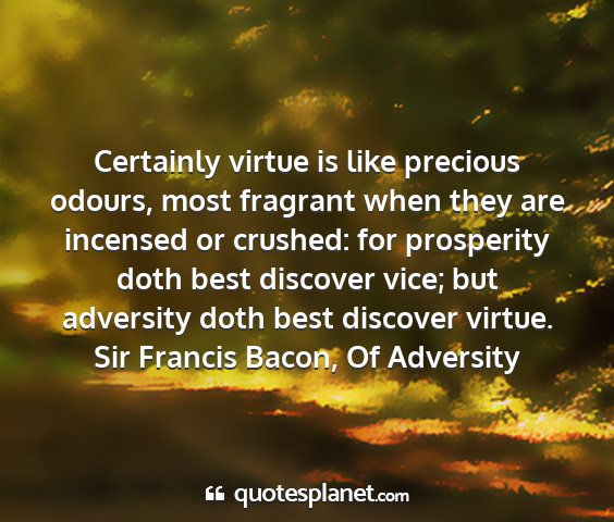 Certainly virtue is like precious odours, most fragrant when they are incensed or crushed: for prosperity doth best discover vice; but adversity doth best discover virtue.Sir Francis Bacon, Of Adversity