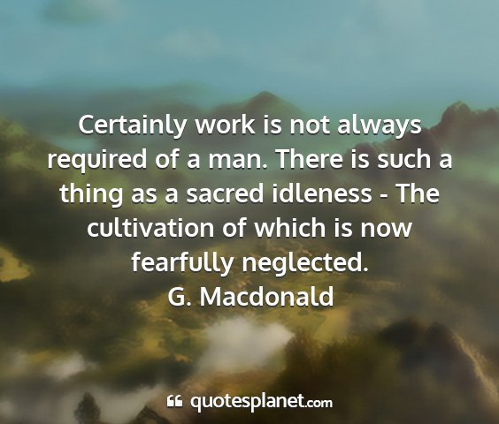 Certainly work is not always required of a man. There is such a thing as a sacred idleness - The cultivation of which is now fearfully neglected.G. Macdonald