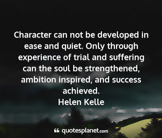 Character can not be developed in ease and quiet. Only through experience of trial and suffering can the soul be strengthened, ambition inspired, and success achieved.Helen Kelle
