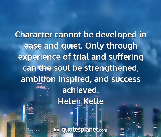 Character cannot be developed in ease and quiet. Only through experience of trial and suffering can the soul be strengthened, ambition inspired, and success achieved.Helen Kelle