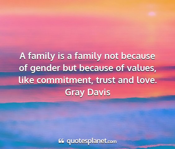 A family is a family not because of gender but because of values, like commitment, trust and love.Gray Davis