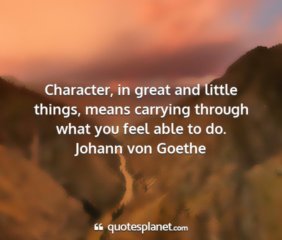 Character, in great and little things, means carrying through what you feel able to do.Johann von Goethe