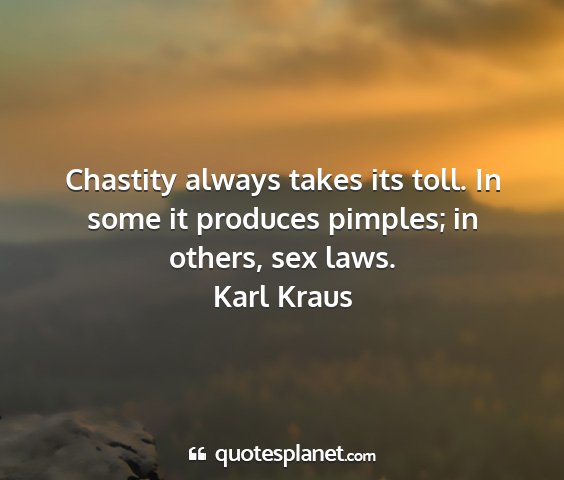 Chastity always takes its toll. In some it produces pimples; in others, sex laws.