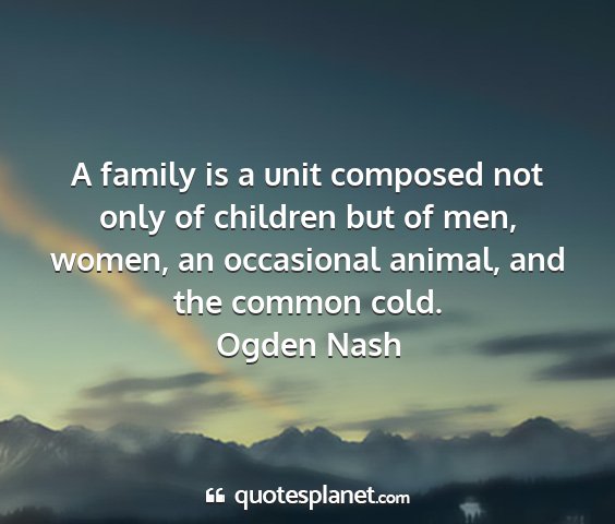 A family is a unit composed not only of children but of men, women, an occasional animal, and the common cold.Ogden Nash