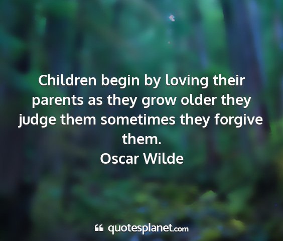 Children begin by loving their parents as they grow older they judge them sometimes they forgive them.Oscar Wilde