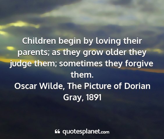 Children begin by loving their parents; as they grow older they judge them; sometimes they forgive them.Oscar Wilde, The Picture of Dorian Gray, 1891