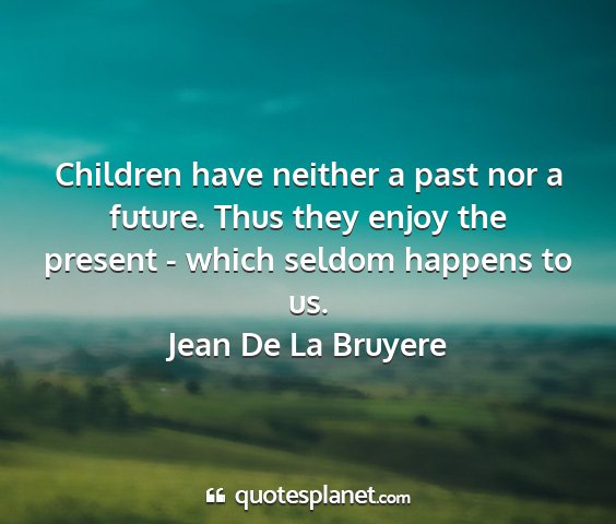 Children have neither a past nor a future. Thus they enjoy the present - which seldom happens to us.Jean De La Bruyere