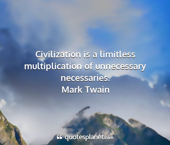 Civilization is a limitless multiplication of unnecessary necessaries.