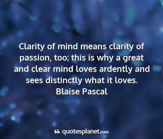 Clarity of mind means clarity of passion, too; this is why a great and clear mind loves ardently and sees distinctly what it loves.Blaise Pascal