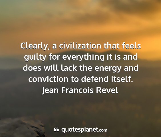 Clearly, a civilization that feels guilty for everything it is and does will lack the energy and conviction to defend itself.Jean Francois Revel