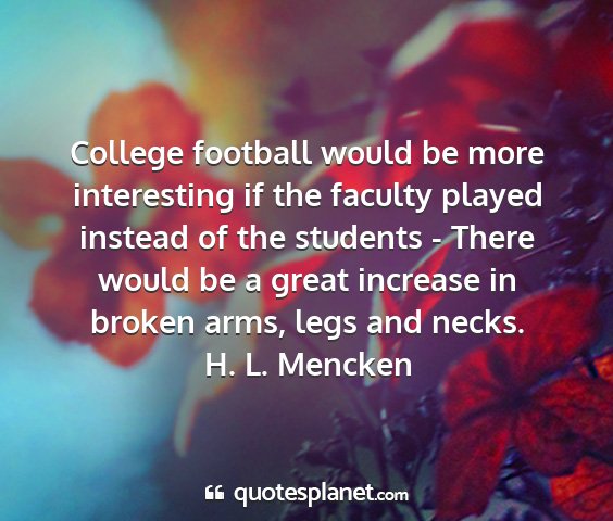 College football would be more interesting if the faculty played instead of the students - There would be a great increase in broken arms, legs and necks.H. L. Mencken