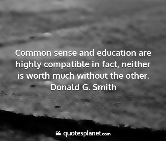 Common sense and education are highly compatible in fact, neither is worth much without the other.Donald G. Smith