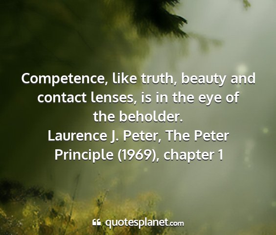 Competence, like truth, beauty and contact lenses, is in the eye of the beholder.Laurence J. Peter, The Peter Principle (1969), chapter 1