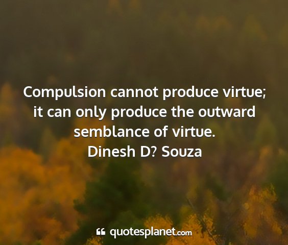 Compulsion cannot produce virtue; it can only produce the outward semblance of virtue.Dinesh D? Souza