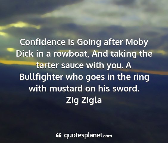 Confidence is Going after Moby Dick in a rowboat, And taking the tarter sauce with you. A Bullfighter who goes in the ring with mustard on his sword.Zig Zigla