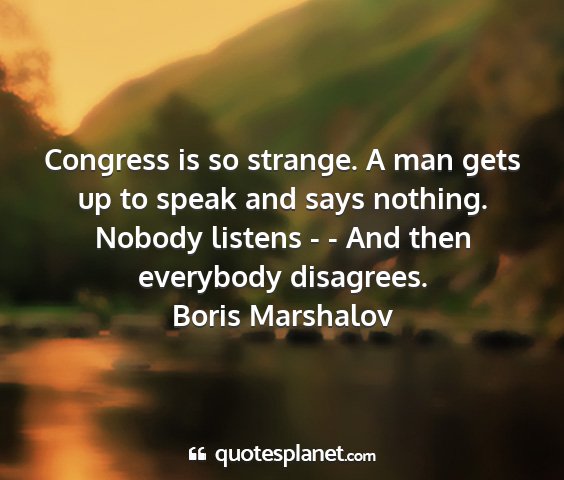 Congress is so strange. A man gets up to speak and says nothing. Nobody listens - - And then everybody disagrees.Boris Marshalov