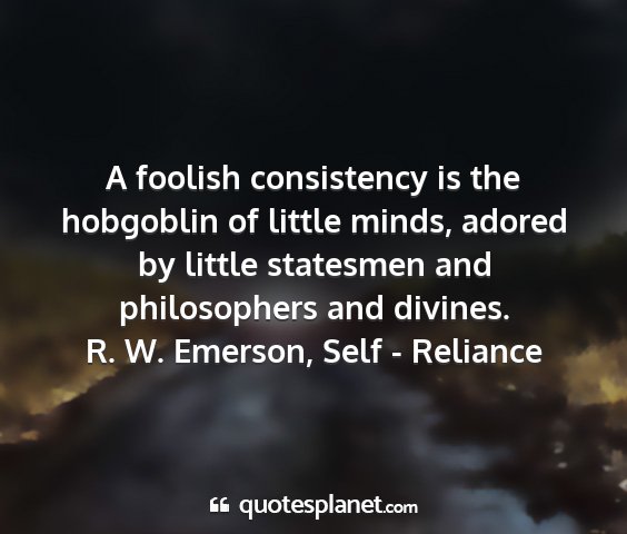 A foolish consistency is the hobgoblin of little minds, adored by little statesmen and philosophers and divines.R. W. Emerson, Self - Reliance