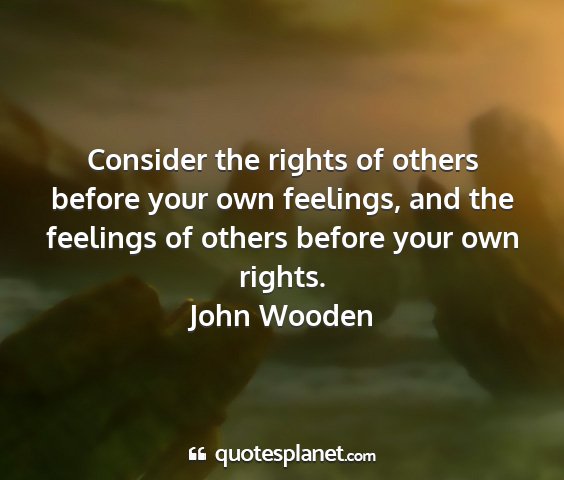 Consider the rights of others before your own feelings, and the feelings of others before your own rights.John Wooden